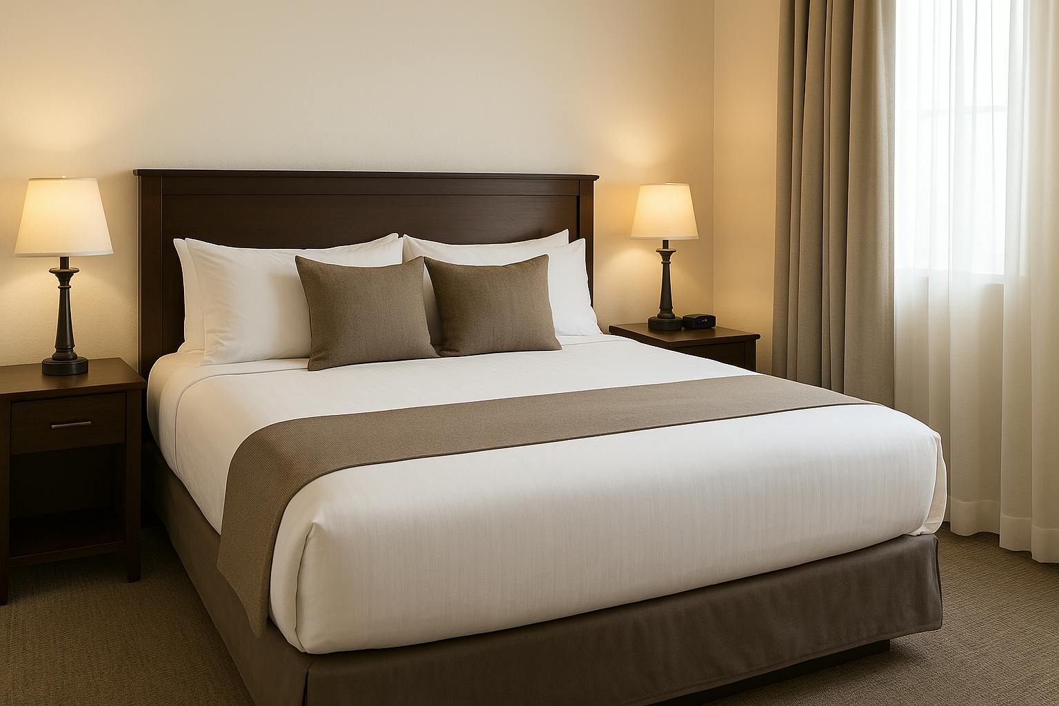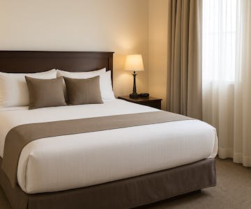 The room offers a warm and elegant ambiance, perfect for enjoying a relaxed stay in the historic heart of Santo Domingo.